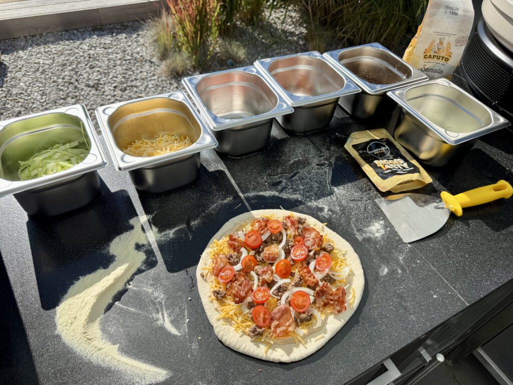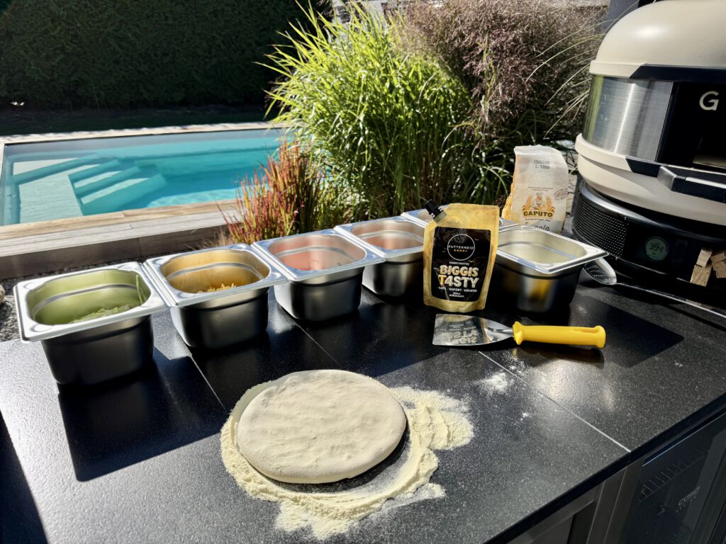 Und wie geht das jetzt? Alles fängt immer mit einem guten „mise en place“ an, dem Arbeitsschritt wo der ganze Bums aus dem Kühlschrank geholt, vorbereitet und bereit gestellt wird. Bei einer Pizza ist das natürlich nicht so aufwendig, aber ein bisschen Vorbereitung braucht es auch da.