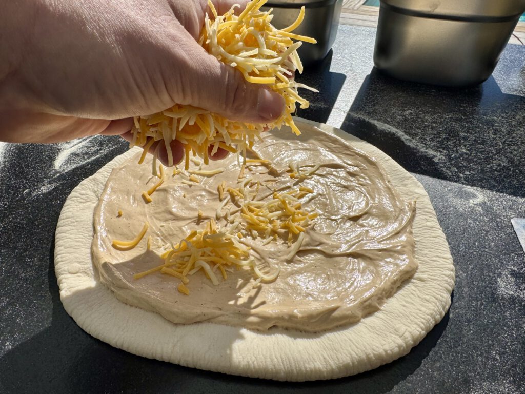 Keine Pizza ohne Käse (ja ja, die Marinara ist ohne)!!! Im Netz waren die Aussagen zum Paten des heutigen Gaumenschmauses eher uneindeutig. Da hieß es zum einen Emmenthaler, aber auch Cheddar war im Gespräch. Ich habe einfach beide Sorten gemischt – wird schon.